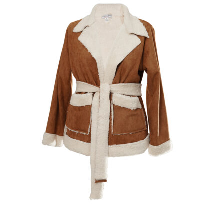 Veste pour femme en fausse fourrure de type sherpa, au toucher doux et effet teddy.
